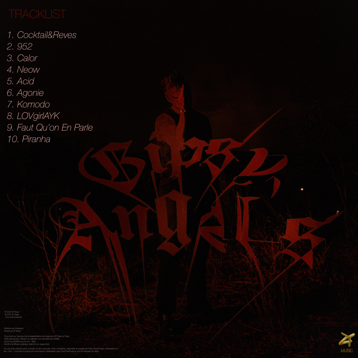 Un tournant dans la vie de l’artiste, où il se « tue » artistiquement pour renaître sous une nouvelle forme, plus résiliante et consciente des trahisons passées. Les sonorités sombres et intenses traduisent la douleur de l’ancienne version de lui-même, laissant place à une force renouvelée.« Acid »